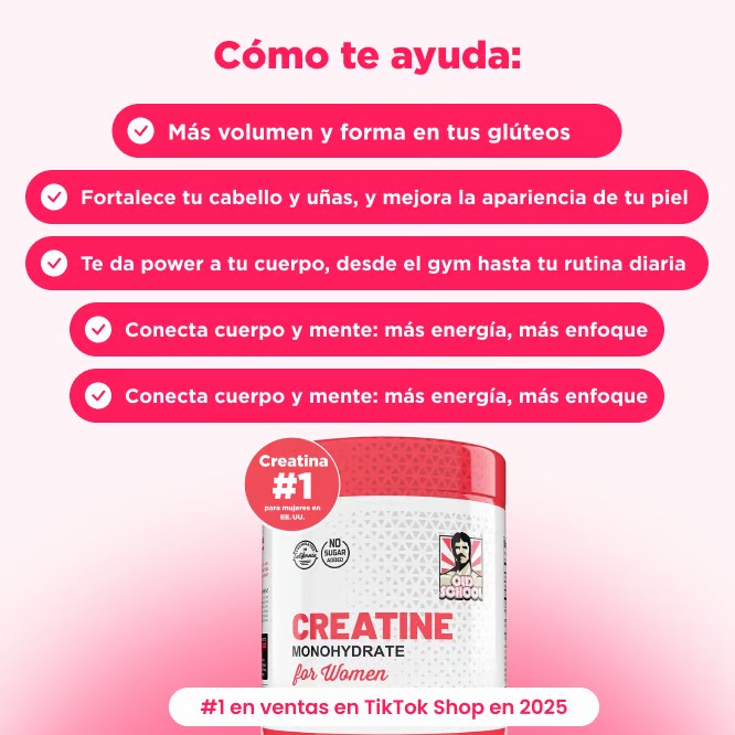 Sonia V. – LojaEntre trabajo, casa y gym terminaba agotada. Desde que uso esta creatina siento más energía y foco, incluso en el día a día. Me ayuda a cumplir mis rutinas sin excusas y eso se ve en mis piernas y glúteos.