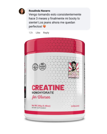Mariela S. – MantaEntreno 4 veces por semana y buscaba una creatina solo para mujeres. Esta se mezcla facilito, no tiene sabor raro y no me cae pesado. He ganado fuerza en sentadillas y peso muerto, y mis glúteos se ven más levantados.